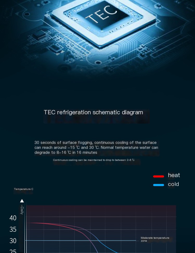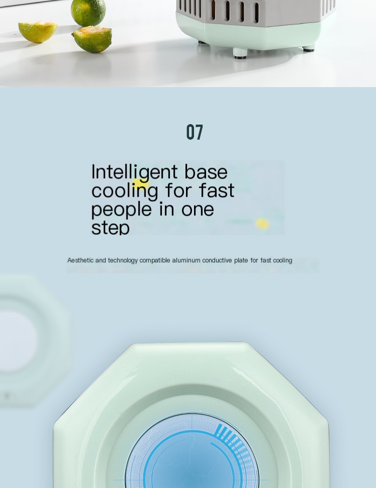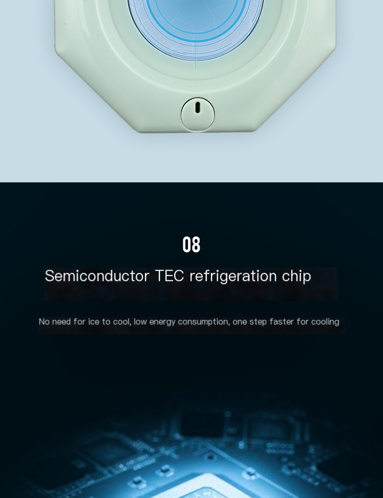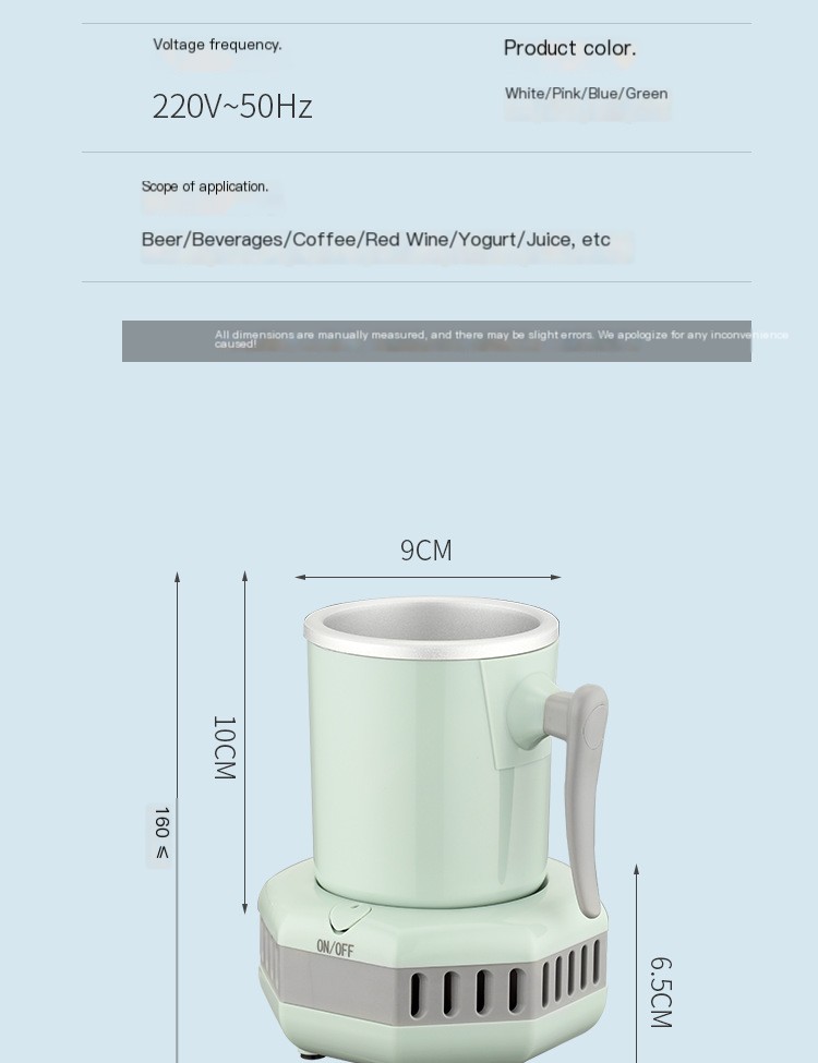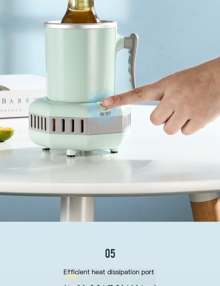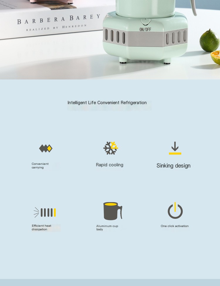 Crafted from durable ABS and aluminium alloy, and powered by a semiconductor refrigeration system, it delivers rapid cooling without the hassle. With a compact size of 15.7cm x 12cm x 9cm (6.18" x 4.72" x 3.54"), it fits seamlessly on your desk or countertop.